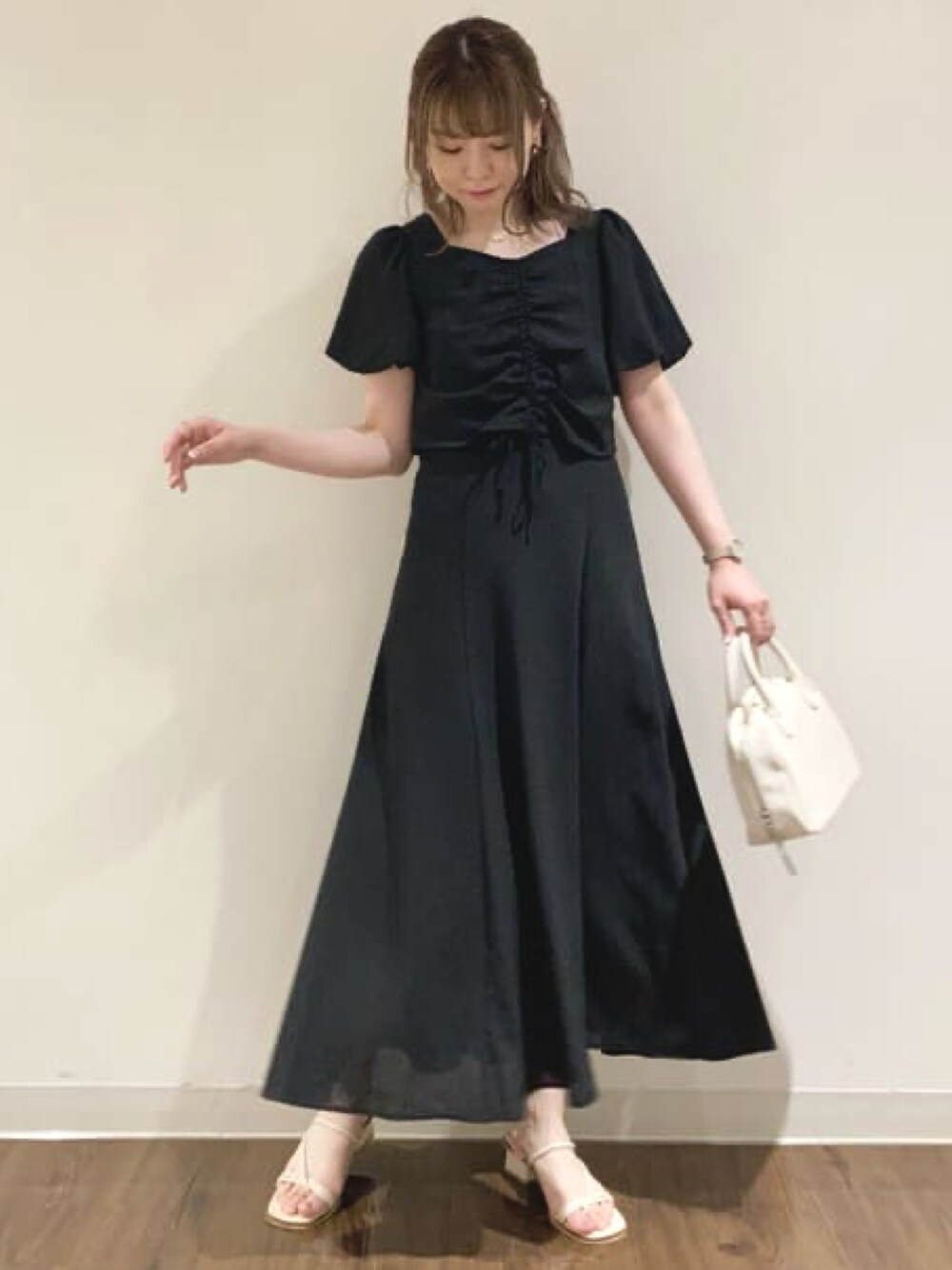 archivesのワンピース「シアーチェックマーメイドキャミワンピース+2WayクロップドBLセット」を使ったコーディネート