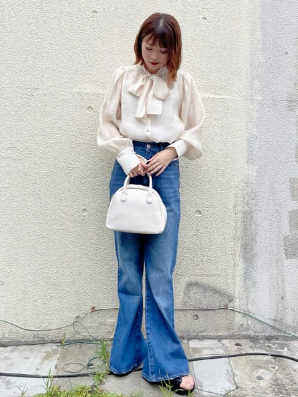 archivesのシャツ/ブラウス「2WAYボウタイパワショルブラウス」を使ったコーディネート