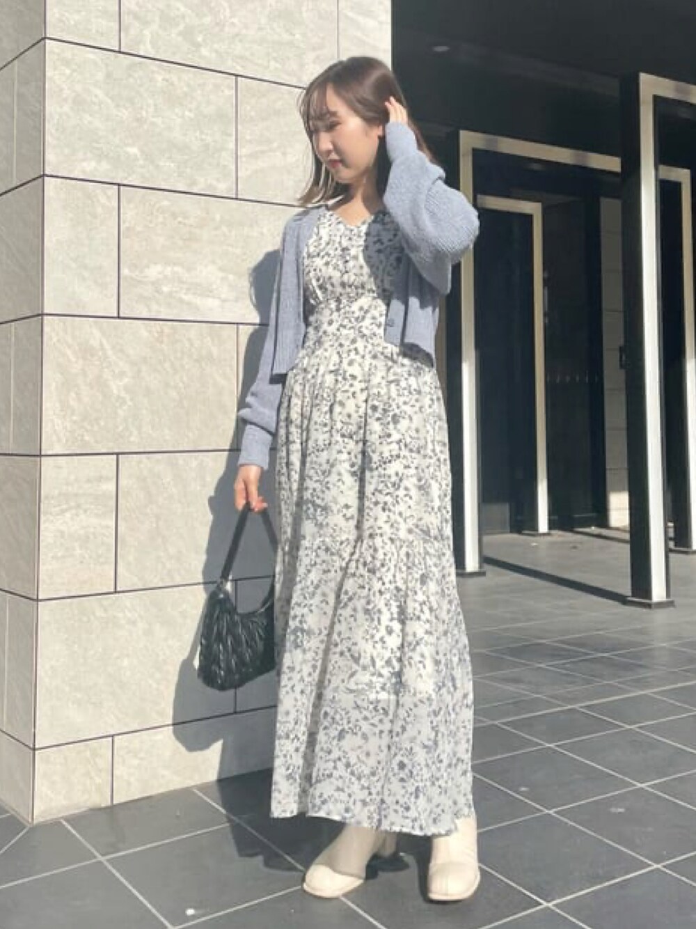 archivesのワンピース「花柄バックレースアップティアードワンピース」を使ったコーディネート