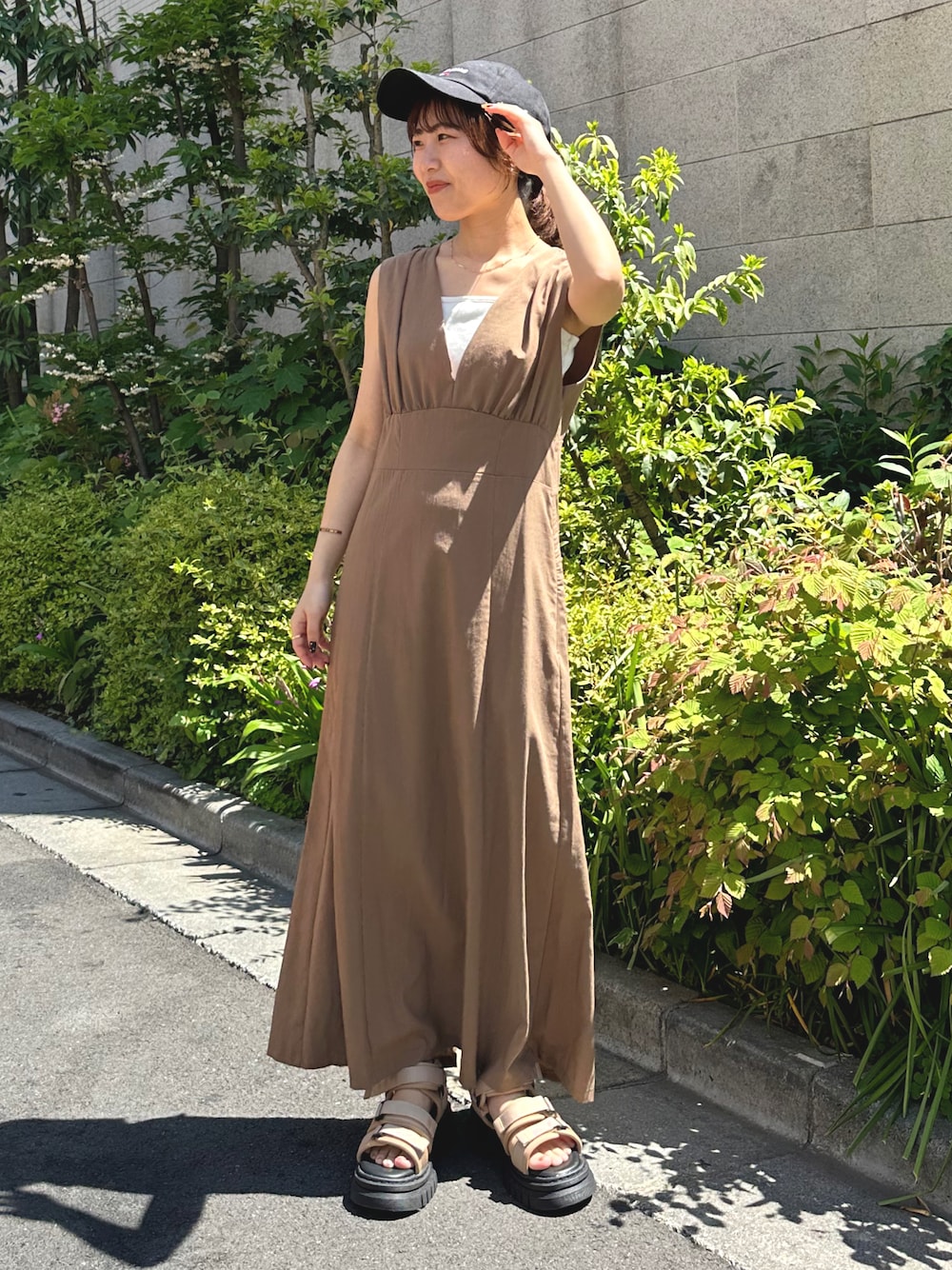 綺麗めなノースリワンピはキャップとスポサンでカジュアルに着こなすのがおすすめ♩ 【Instagram】 新作商品アップしています! ぜひフォローお願いします♪ ➡︎@archives__official