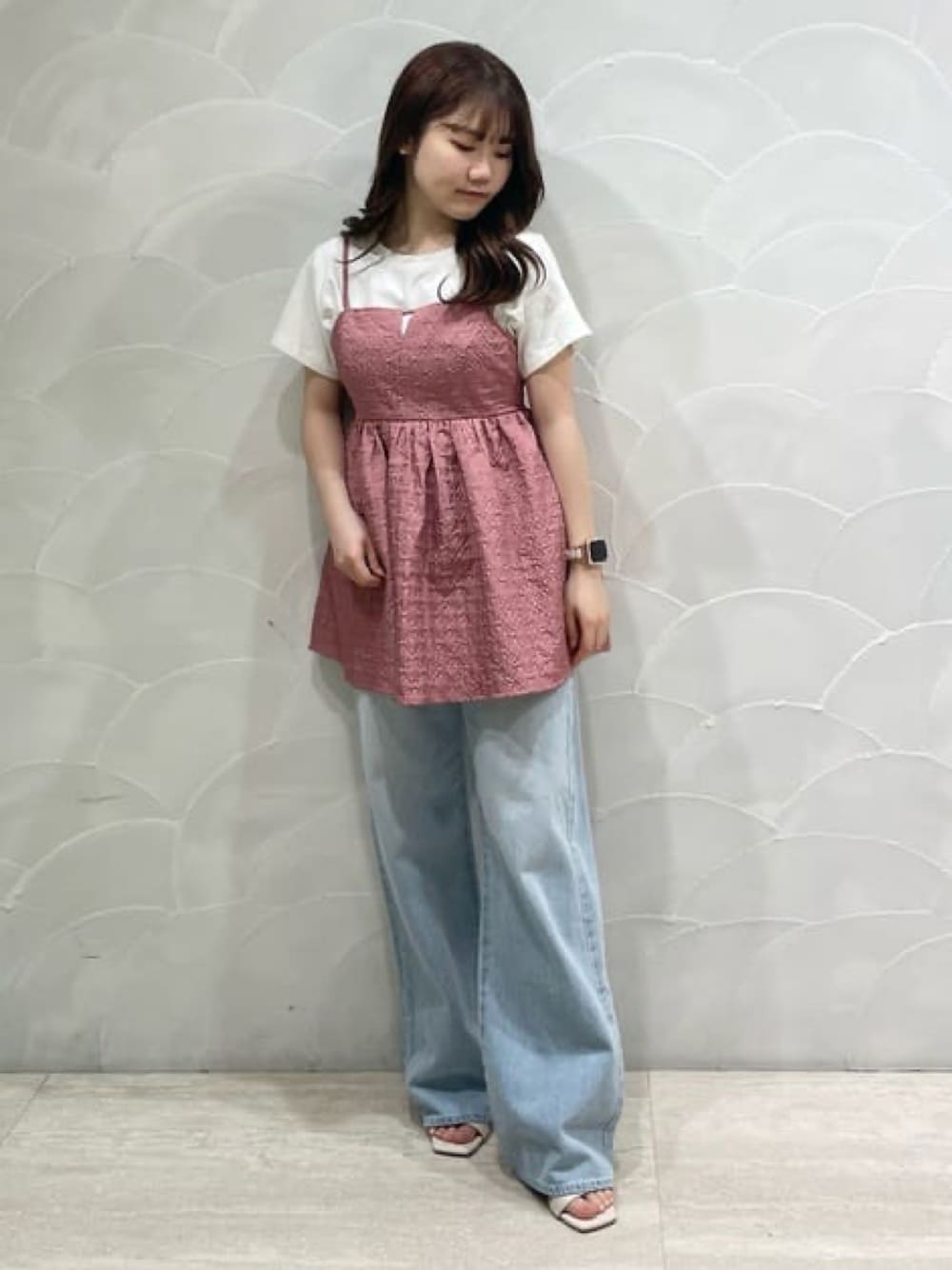 archivesのシャツ/ブラウス「BackレースUPエンボスキャミチュニック」を使ったコーディネート