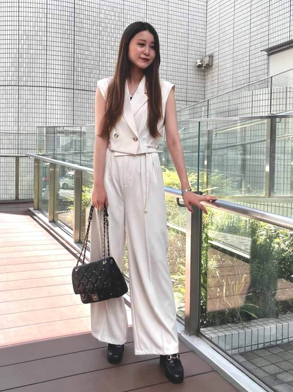 archivesのショルダーバッグ「キルトスタッズチェーンショルダー」を使ったコーディネート