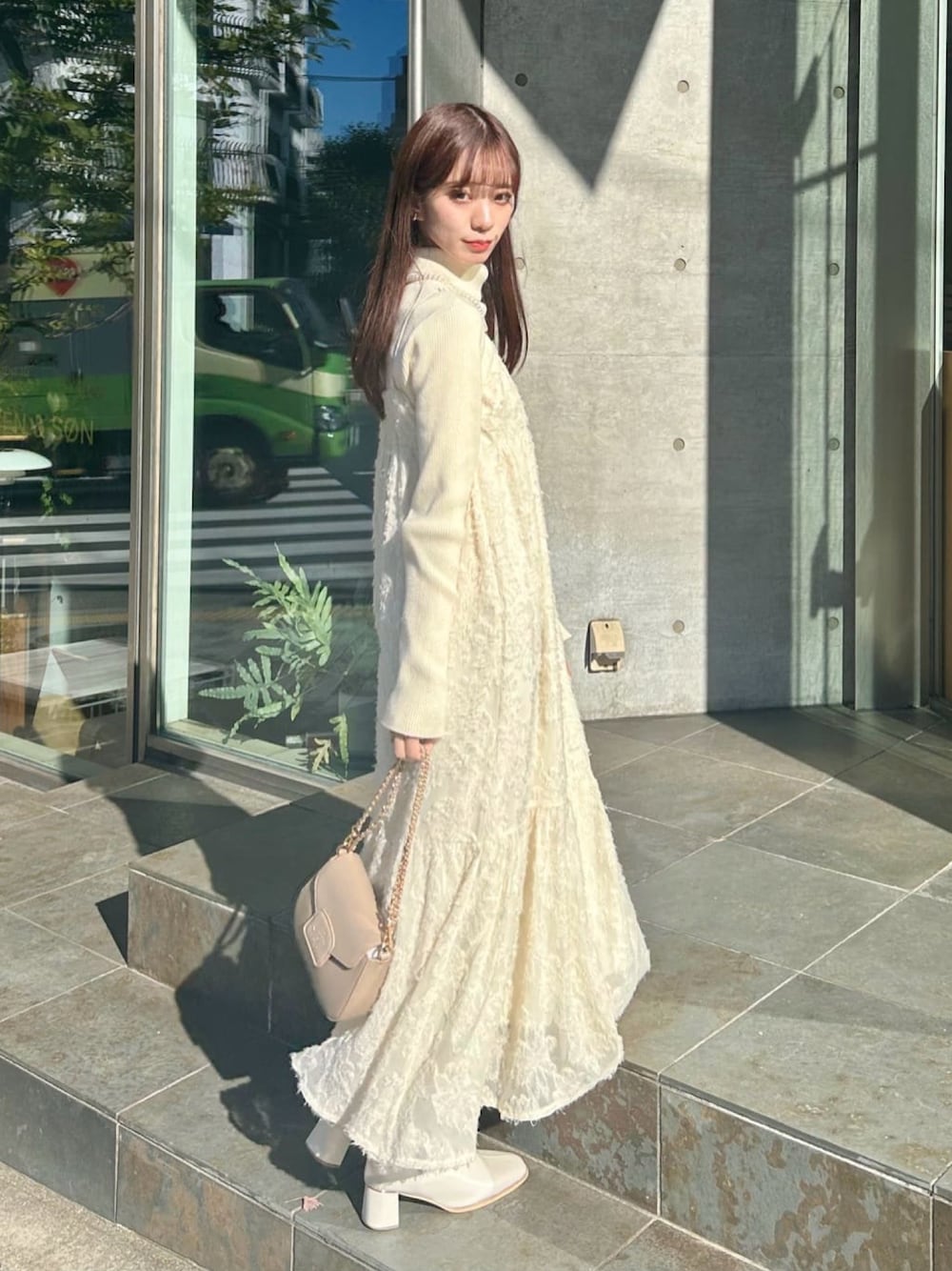 archivesのワンピース「ティアードシャギーキャミワンピース」を使ったコーディネート