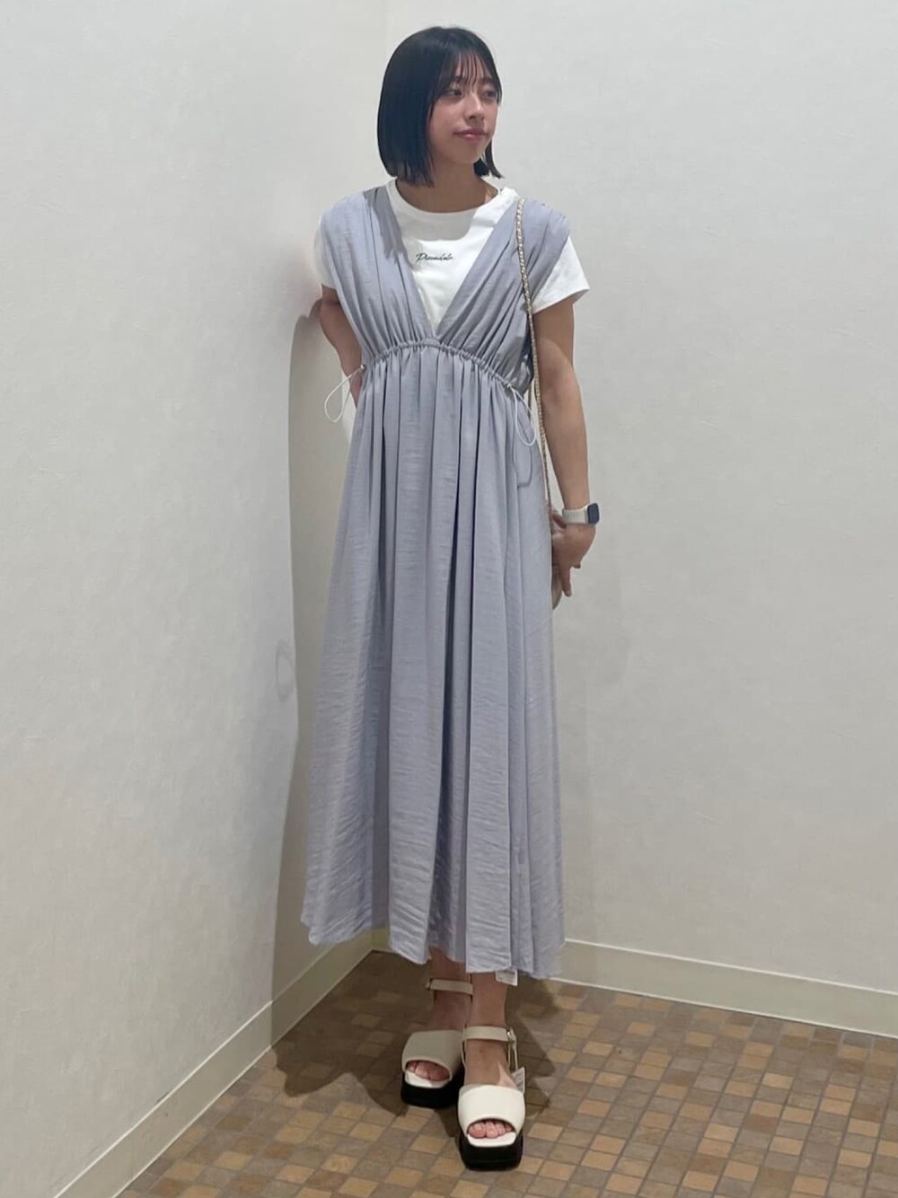 Tシャツを合わせると少しカジュアルっぽくなるのと二の腕も隠れるので二の腕が気になる方におすすめ🌟