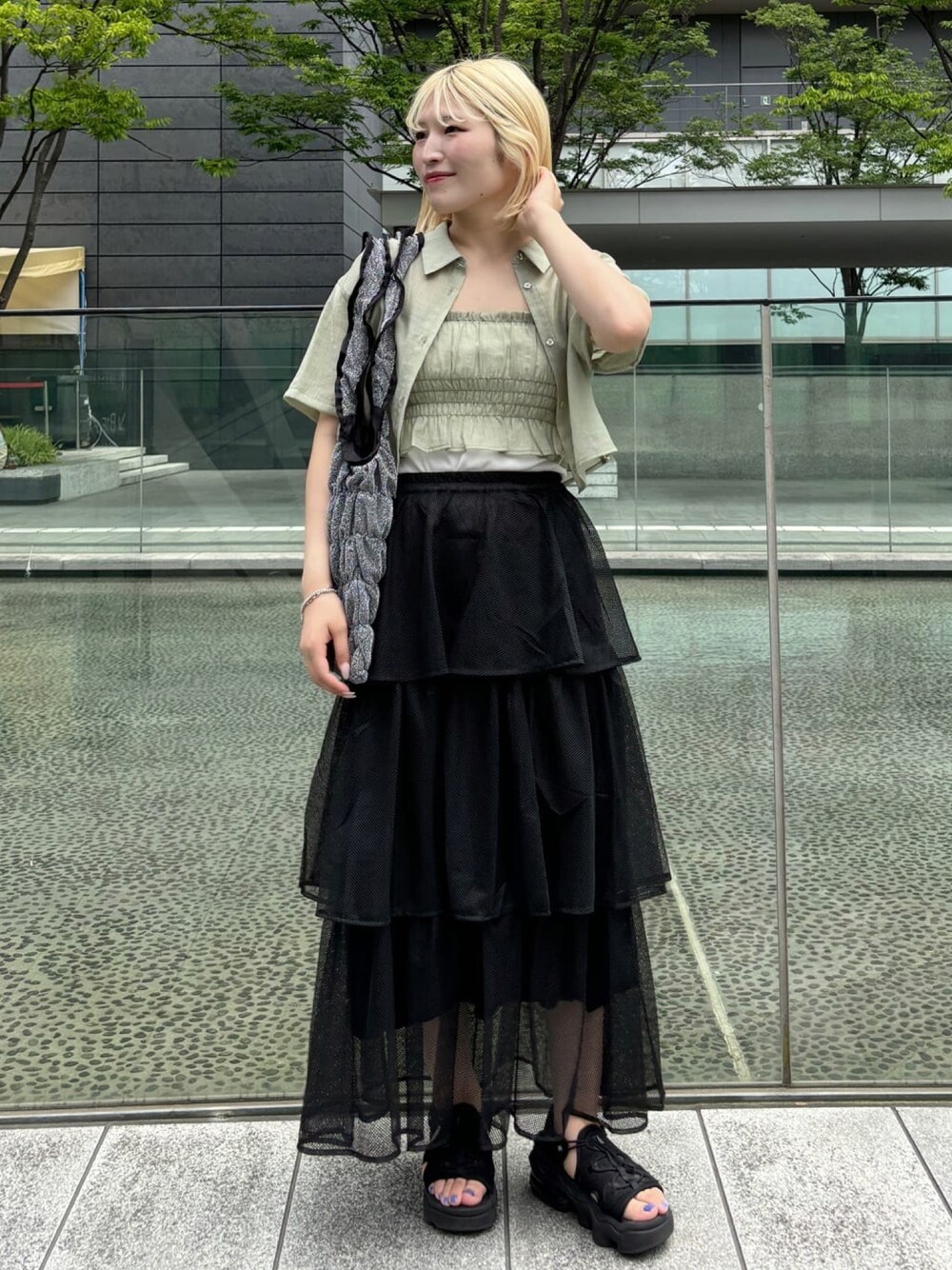 ビスチェをインナーにしたバージョンできてみました!中には、カップ付きのインナーを合わせると安心して着られます🙆♀️