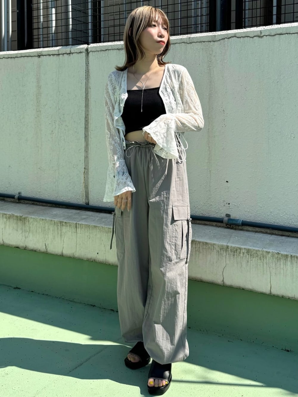 甘めレースとカジュアルなカーゴパンツで甘辛スポーティーなコーデ🎱💞