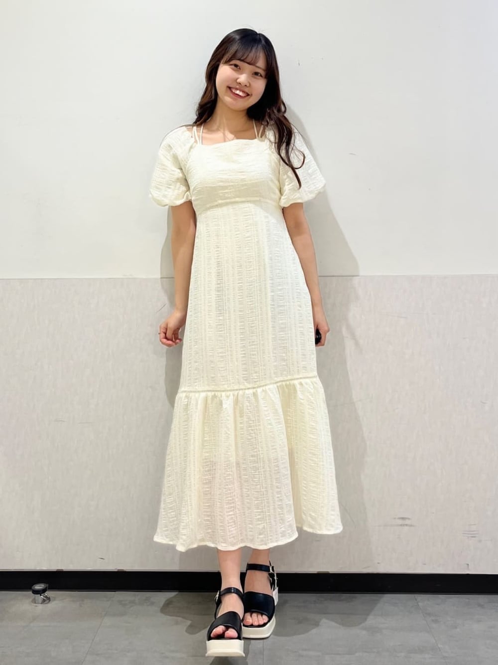 archivesのワンピース「シアーサッカー2wayオフショルワンピース」を使ったコーディネート