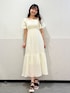 そのまま着るのはもちろん、肩を落としてオフショルとして着ていただくことも可能◎胸下にラインが入っていることで脚長効果も抜群❕ 身長165cmで足首が見える丈感ですが、調節が出来るのでお好みの丈感で着れるのも嬉しい〜🫶