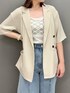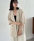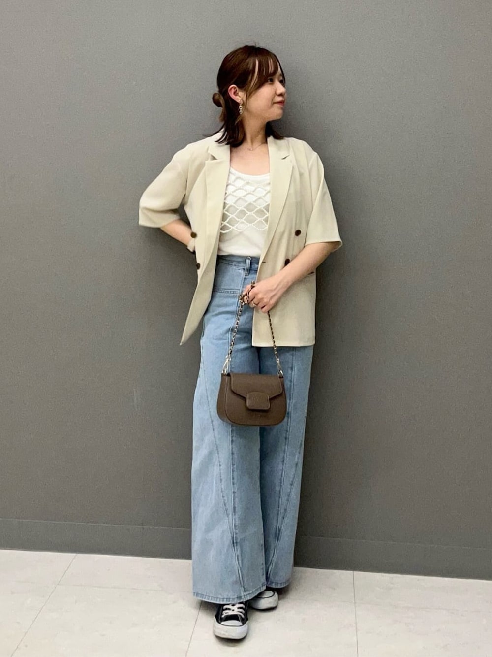 麻調の5部丈になったジャケットとカップ付きインナーとパールのビスチェを合わせて着ています◎ジャケットは裏地がないため軽く涼しく夏でもサラッと着用頂けます!素材感も柔らかく着心地抜群です💧