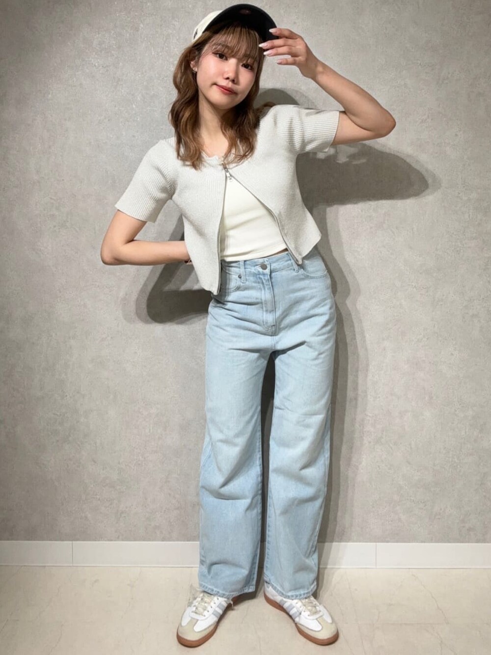 archivesのニット/セーター「Wzipハーフスリーブラメリブニット」を使ったコーディネート