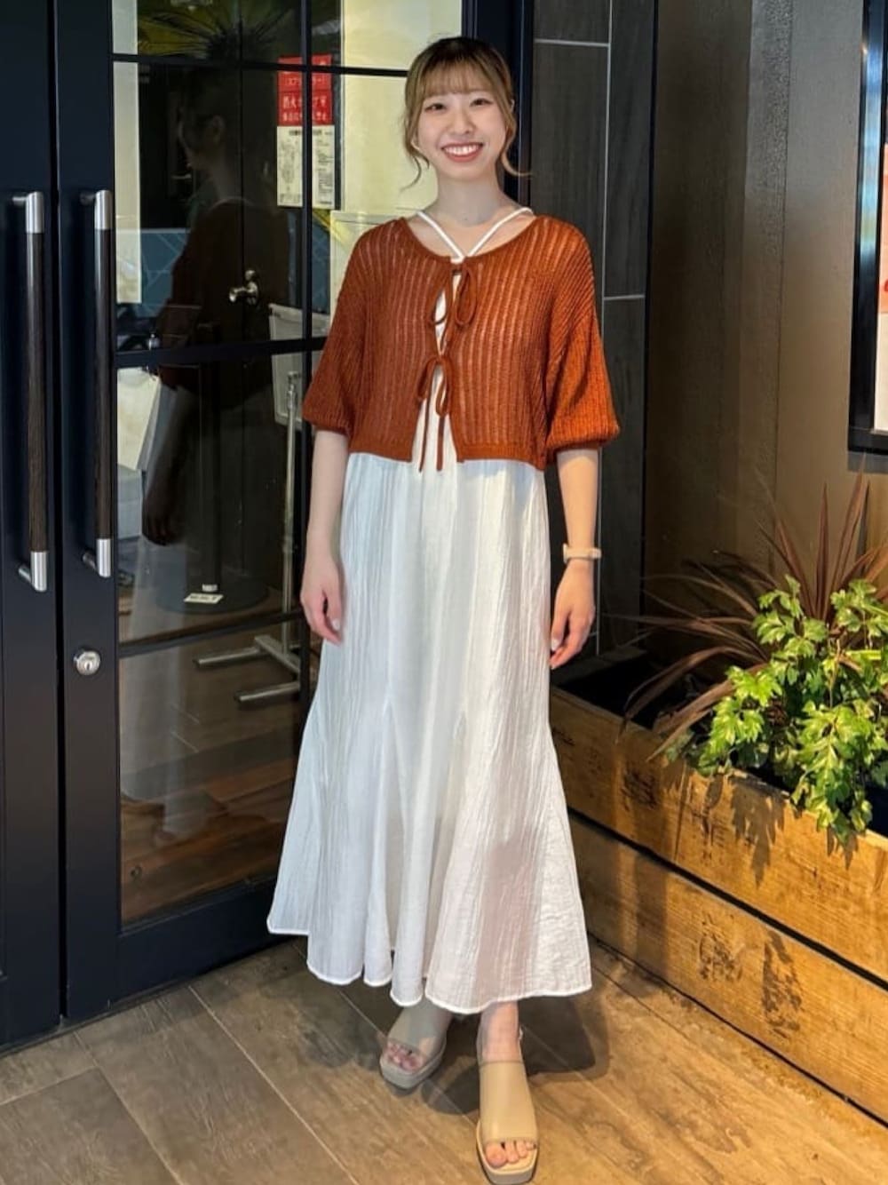 カーディガンとセットなのでコーデを考えなくてもお洒落に着れるのは魅力的✨ 白のワンピース透けないか気になる方多いと思いますが、裏地がしっかりついてるので安心して着ていただけます👍🏻