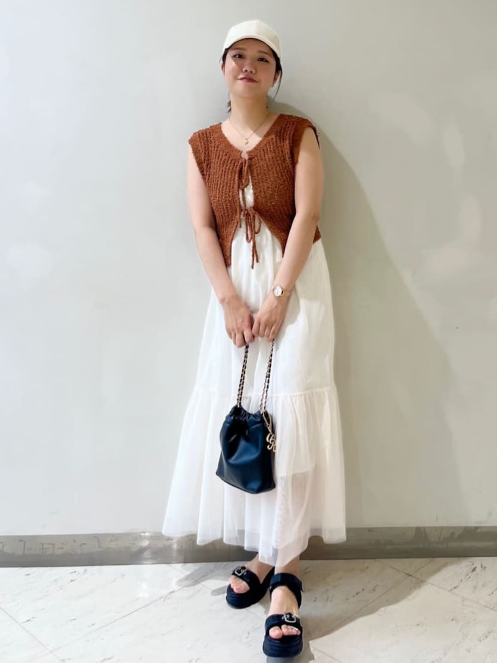 ワンピースはチュール素材で透け感が可愛いシンプルなシルエット◎ アジャスターで丈感が調節も可能で胸元はシャーリングなので着心地も良いです♪
