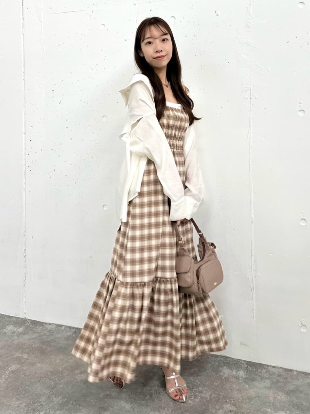 褒められること間違いなしのサマーワンピ♡ 柔らかいbeigeカラーだったのでワンピ以外も淡色でまとめてみました✨