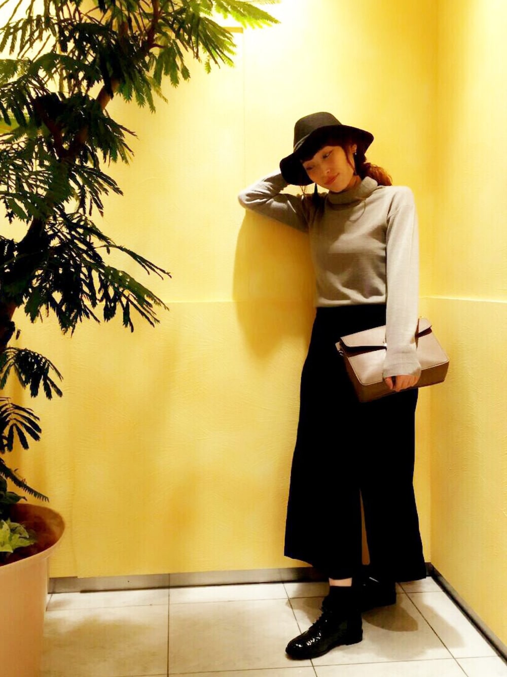 グレーのタートルニットに ブラックのガウチョで 洗練されたモノトーン 大人カジュアル