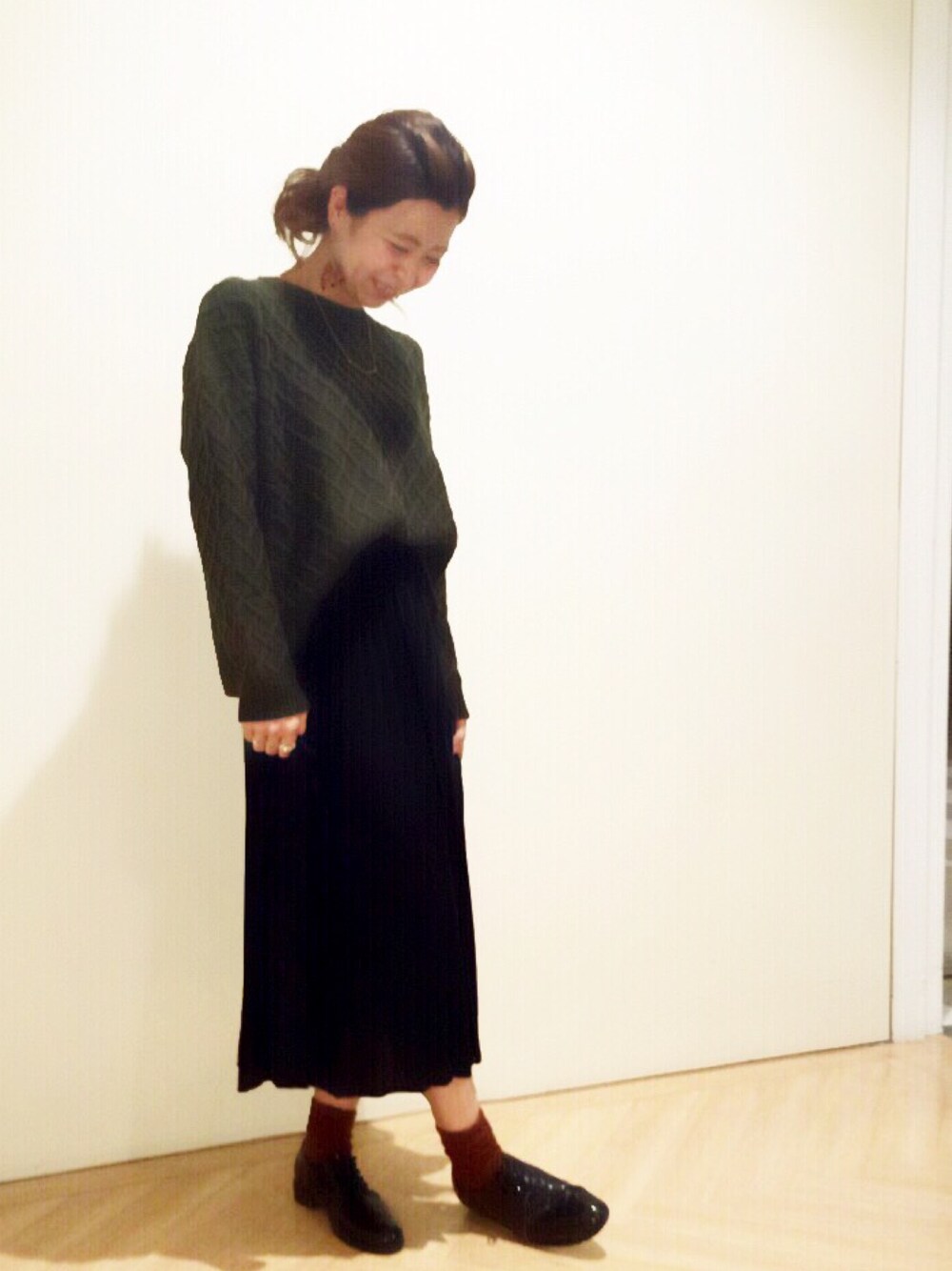 カジュアルなニットに、プリーツスカートを合わせて上品な大人カジュアルコーデ ただいまセットフェア開催中!! ・トップス+ボトムス→¥8,000 ・トップス+トップス→¥8,000 このセットも通常価格だと ¥10,800→¥8,000!!
