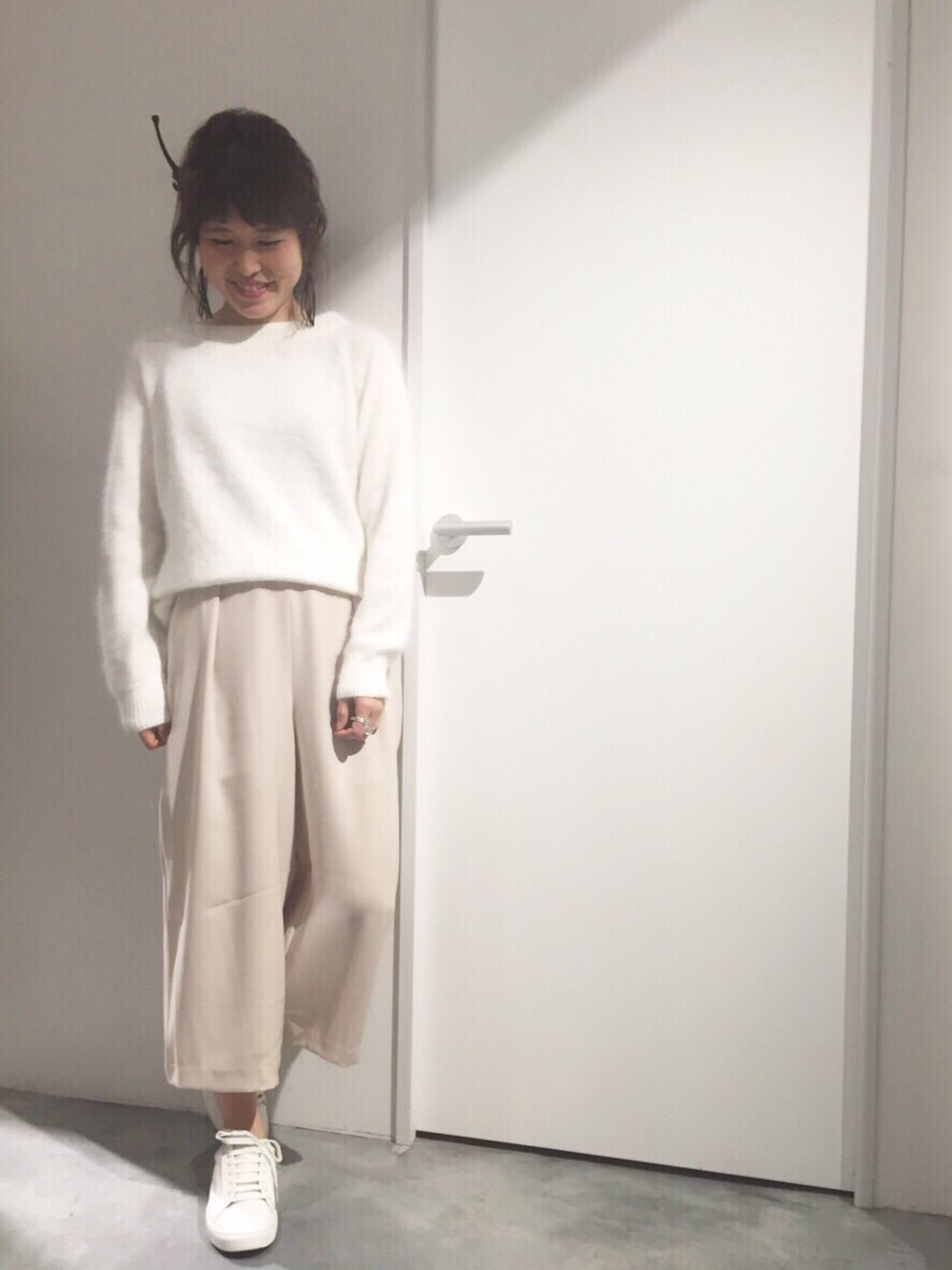 定番のニットとガウチョも ワントーンでまとめれば クリーンな印象に