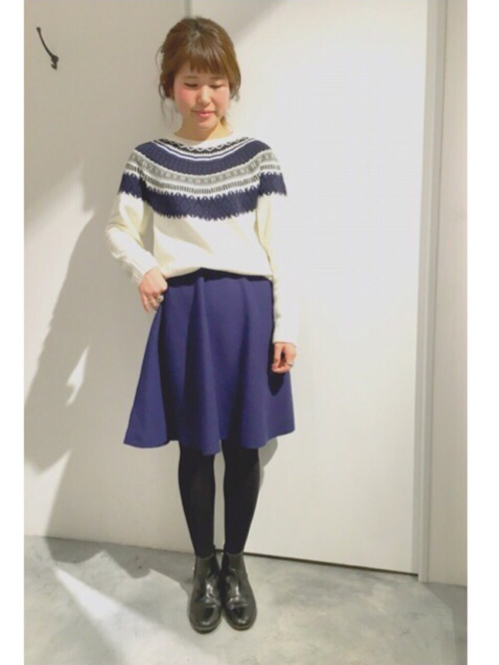 冬になると必ず着たくなる ノルディック柄のニット 寒色系コーディネートで 北欧スタイル♫