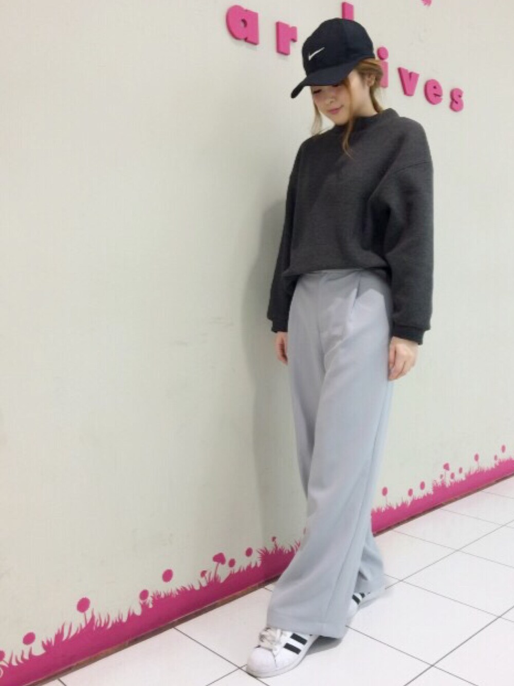 キャップとスニーカーでモードスタイルを カジュアルに外しました(^O^)