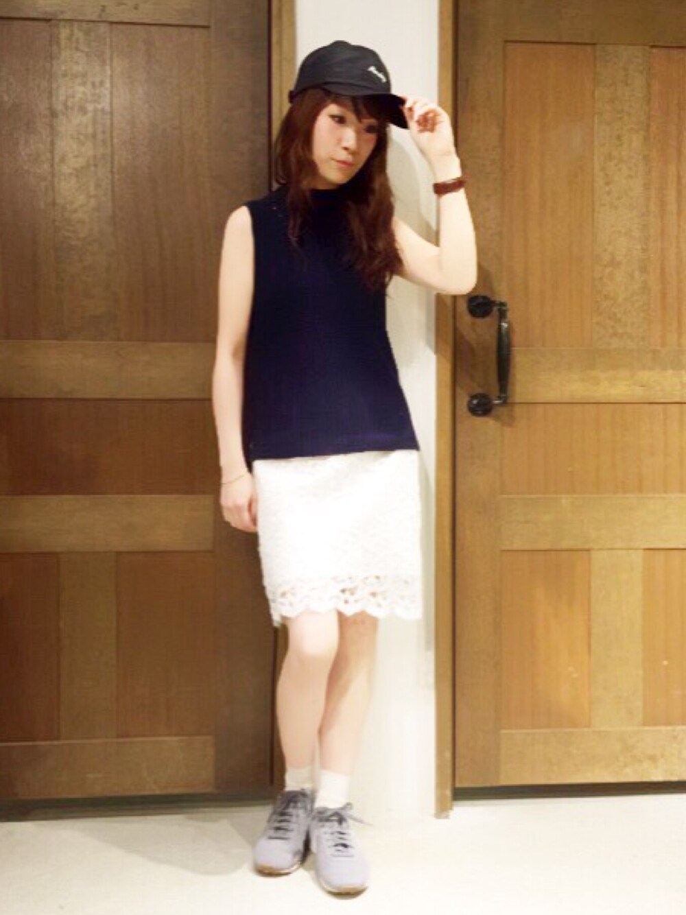 ベスト×レーススカートに キャップとスニーカーをプラス** 素敵な大人カジュアルのできあがり(*^^*)