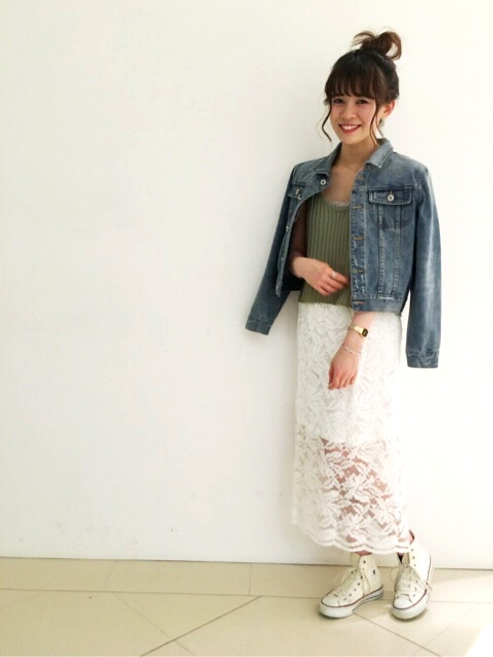 レーススカートに ヴィンテージ風なGジャン 大人カジュアル! スカートは裏地取り外し可 サイドスリットが おフェロな印象に * * * * InstagramとFacebook始めました! プロフィールにURL載せてますので 是非フォローお願い致します * * * *