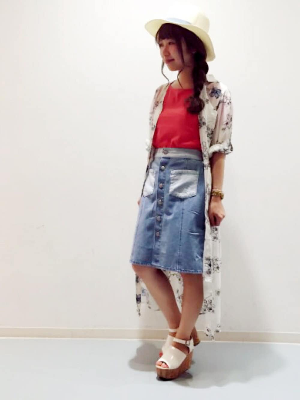 花柄ワンピースは ガウンとして羽織にも◎ リメイク風のデニムスカートで ガーリーカジュアルに