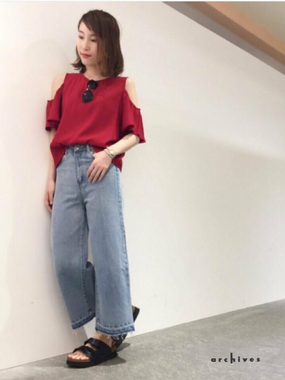 この夏は肩開きトップスで ヘルシーな肌見せが◎ カットオフデニムで カジュアルダウン!