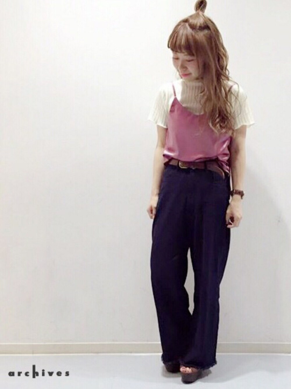archivesのTシャツ/カットソー「【店舗限定商品】メローハイネック半袖プルオーバー」を使ったコーディネート