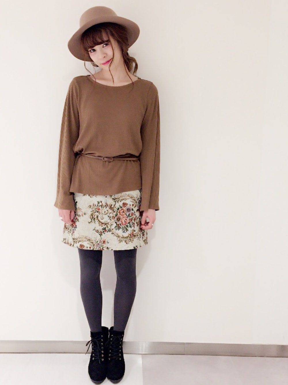 ▪️ZOZOTOWN限定商品▪️ 細ベルト付きのトップスは フレアスリーブが今年らしい。 コチラはzozoのみの限定アイテム。 ゴブランのスカートで ヴィンテージ感をプラス◎