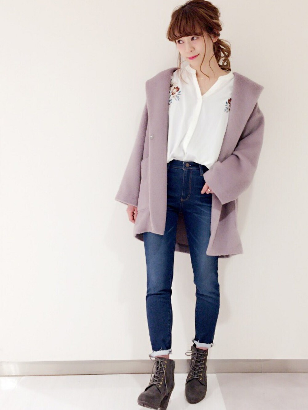 軽くて暖かい フードコート✨ デニム合わせで カジュアルに Instagramもプロフィールから とべるので是非ご覧ください♪