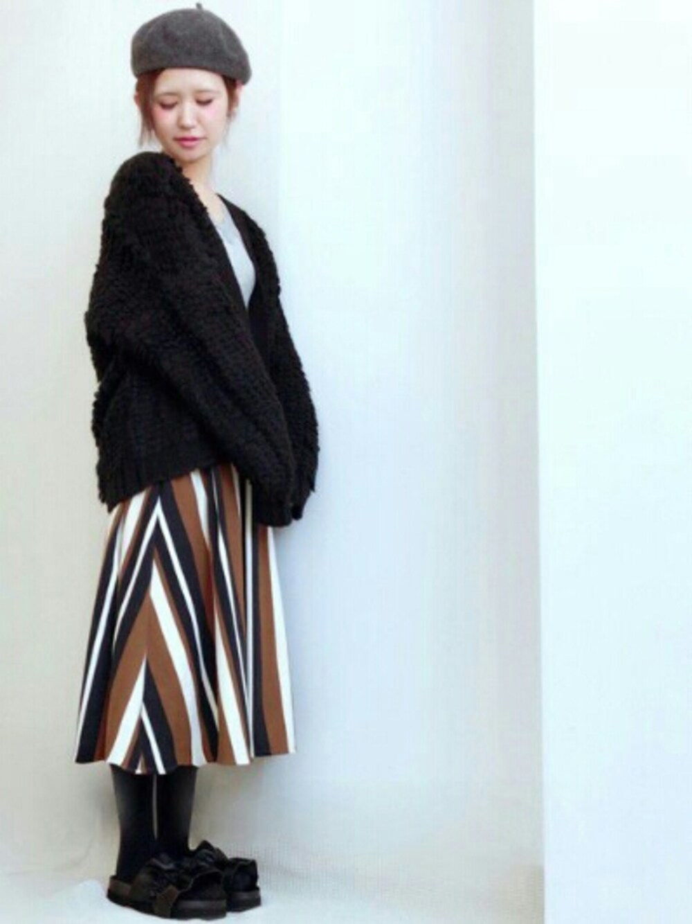 本日完売していた ループカーディガンが 再入荷しました♪ ストライプのミディ丈スカートで 大人カジュアルに Instagramもプロフィールから とべるので、是非ご覧ください♪