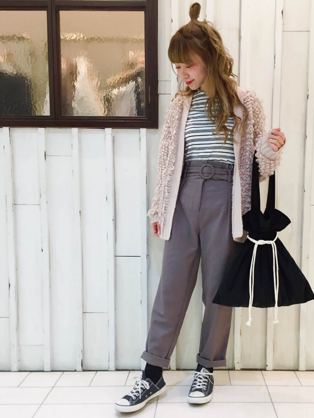 人気のループカーデが 新色とともに再入荷しました!! インナーをボーダーにして ピンクの甘さをおさえめにコーデ♡ Instagramもプロフィールからとべるので、是非ご覧ください♪