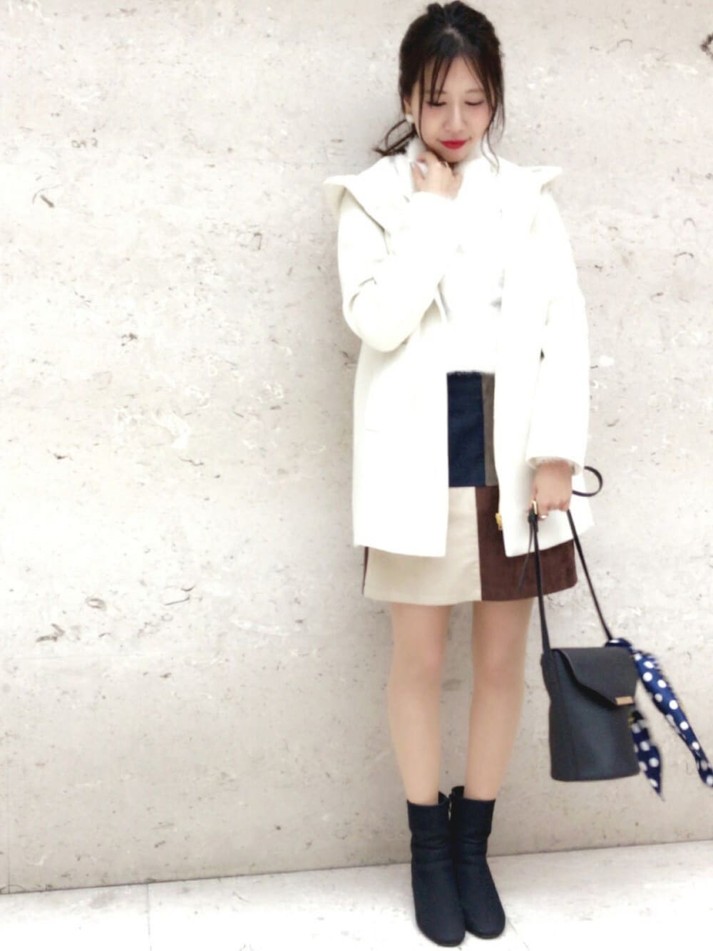 白いコートはモテコーデの必須アイテム。 ミドル丈だからボトムを選ばず着れる👌🏻 パネル柄のスカートで ヴィンテージガーリー💕 プロフィールからInstagramへ飛べるので 是非ご覧ください♩