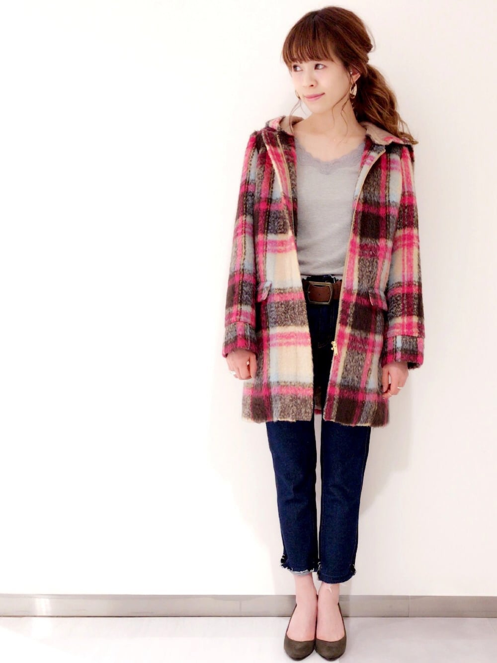 冬ファッションはアウターで勝負! 珍しいピンクチェックのコートで マンネリしがちなアウターコーデを オシャレにアップデート✨ フードを取り外せば ノーカラーでキレイ目に🌹 ※こちらはZOZOのみの限定アイテムです Instagramも是非ご覧ください❤︎