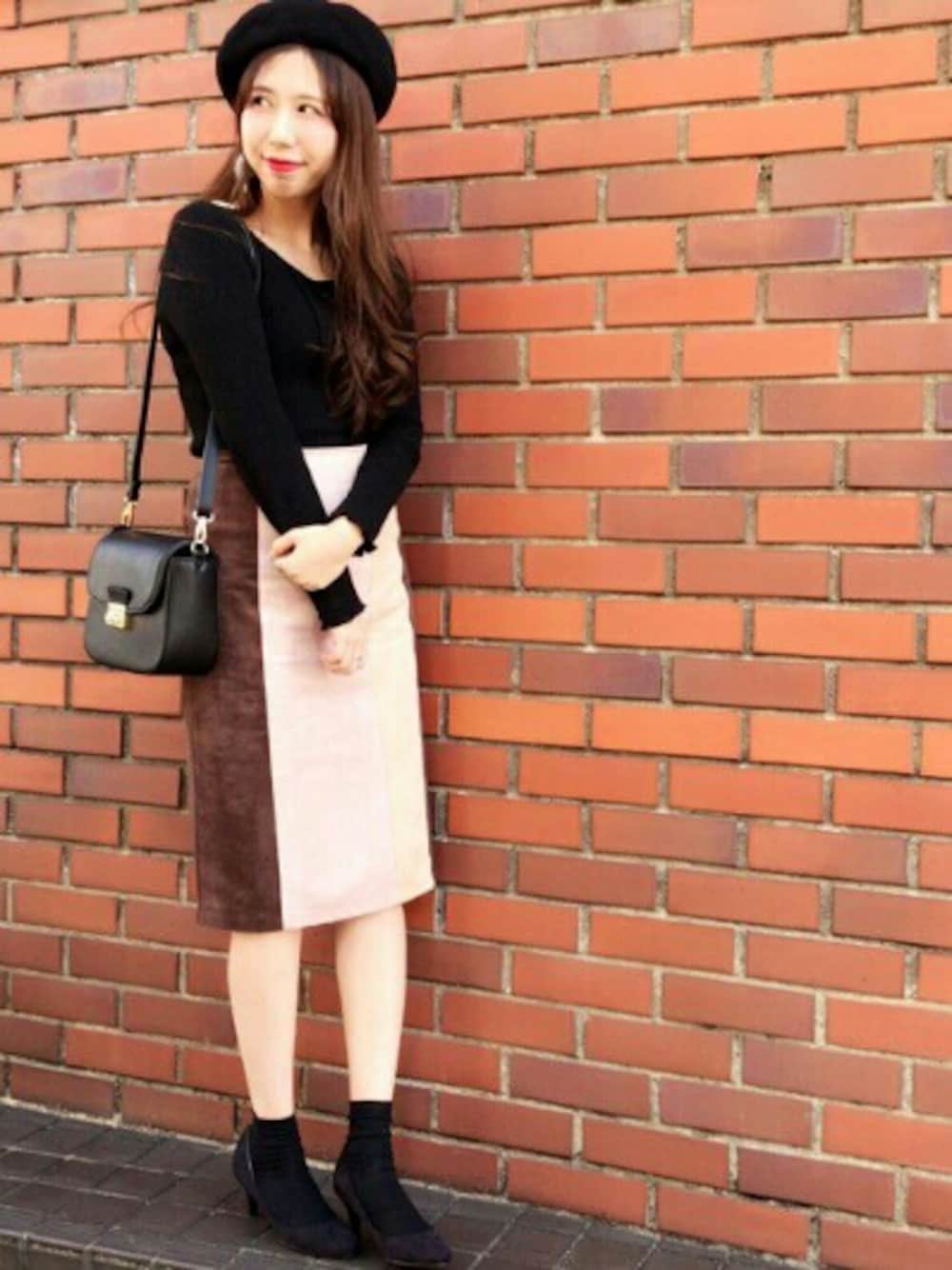 膝下丈のパッチワークスカートと ブラックのレースアップニットで 大人ガーリーに Instagramもプロフィールから とべるので、是非ご覧ください♪