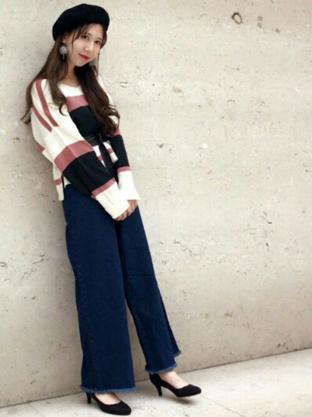 店頭でも大人気のマルチボーダーニット デニムワイドとパンプスで 大人カジュアルに Instagramもプロフィールから とべるので、是非ご覧ください♪