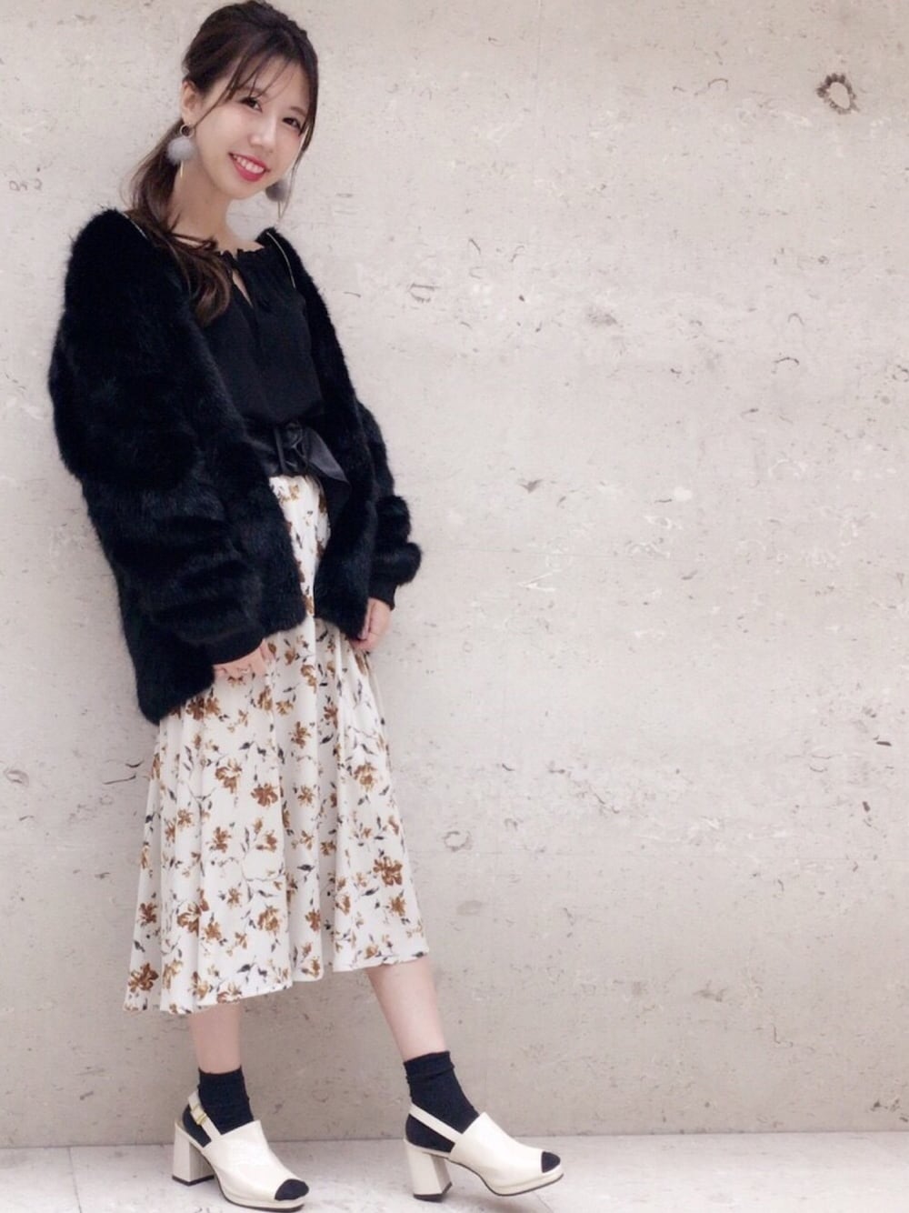 今の時期にピッタリな ファーコート💝 ブラックで大人モードコーデ Instagramもプロフィールから とべるので是非ご覧ください♪