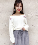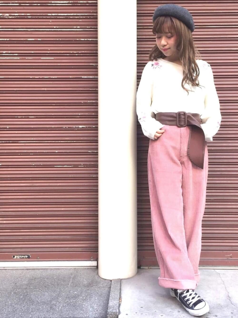 肩の刺繍がポイントのニットに ピンクのコーデュロイのワイドパンツで ゆるガーリーコーディネート❤︎ 🎀model:erina🎀 ガーリーゆるカジュアルなerinaのwearも ゼヒcheckしてみてください❤︎