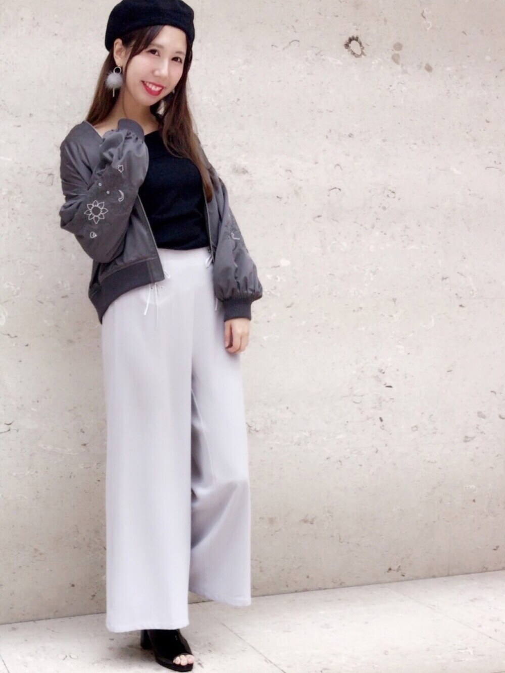 ブラックとグレーのツートーンで 大人な春コーデ✨✨ マストなMA1も刺繍とビッグシルエットで 新鮮さアップ💕 🌹model:ayaka🌹 トレンドフェミニンなayakaのwearも ゼヒcheckしてみてください♩