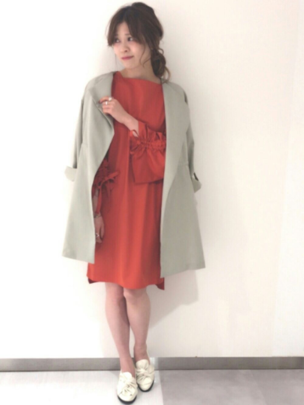 archivesのワンピース「袖ドロストギャザーワンピース」を使ったコーディネート