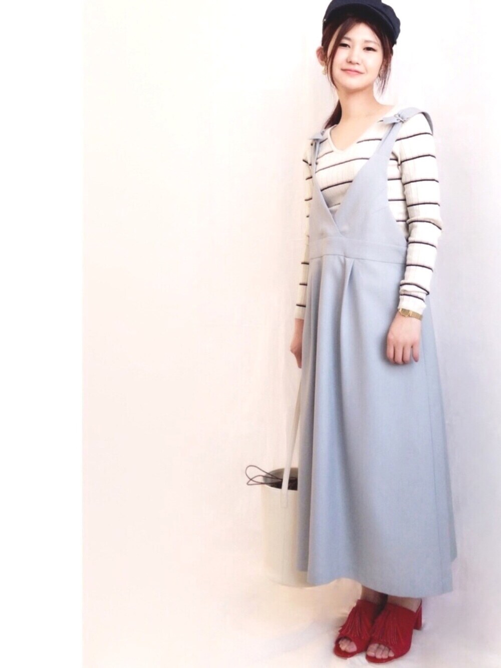 春カラーのサロペットを ボーダーインナーで 大人カジュアルに✨ 💐model:yoshimi💐 甘めカジュアルなyoshimiのwearも ゼヒcheckしてみてください♩