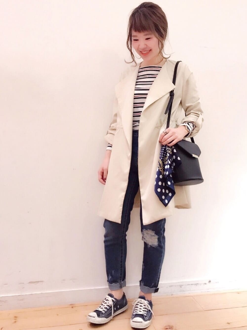 あったかくなったら春アウターの出番💕 さらっと羽織ってさまになる着流しコート ゆるっと感が大人カジュアルを演出✨✨ 🌟model:かみちゃん🌟 カジュアルMIXコーデのかみちゃんwearも ゼヒcheckしてみてください♩