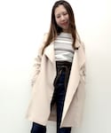 着流しのコートは プリーツのブラウスとダメージデニムで キレイめカジュアルに 赤のベルトを差し色に 💐model:yoshimi💐 甘めカジュアルなyoshimiのwearも ゼヒcheckしてみてください♩