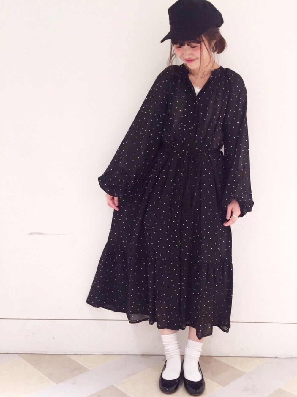 ドットのワンピースはそのまま着ても 羽織にしてガウンで使える2way◎ マリンキャスケットとバレーシューズで フレンチマリンスタイル❤︎ 🍥model:まるこ🍥 個性派カジュアルなまるこのwearも ゼヒcheckしてみてください♩