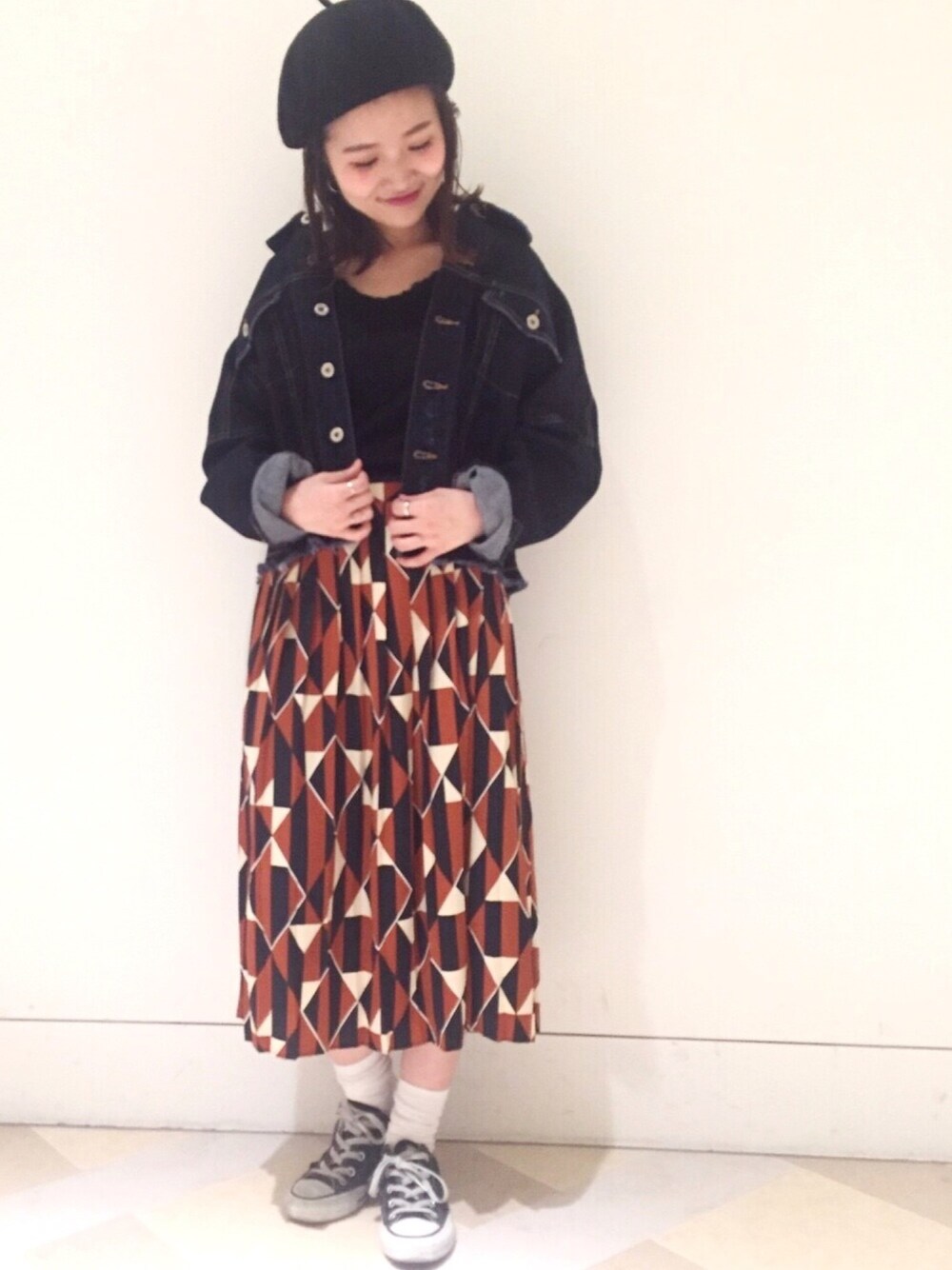 人気のプリーツスカートを Gジャンでカジュアルダウン アウターは肩を落として着るのが◎ 🍥model:まるこ🍥 個性派カジュアルなまるこのwearも ゼヒcheckしてみてください♩