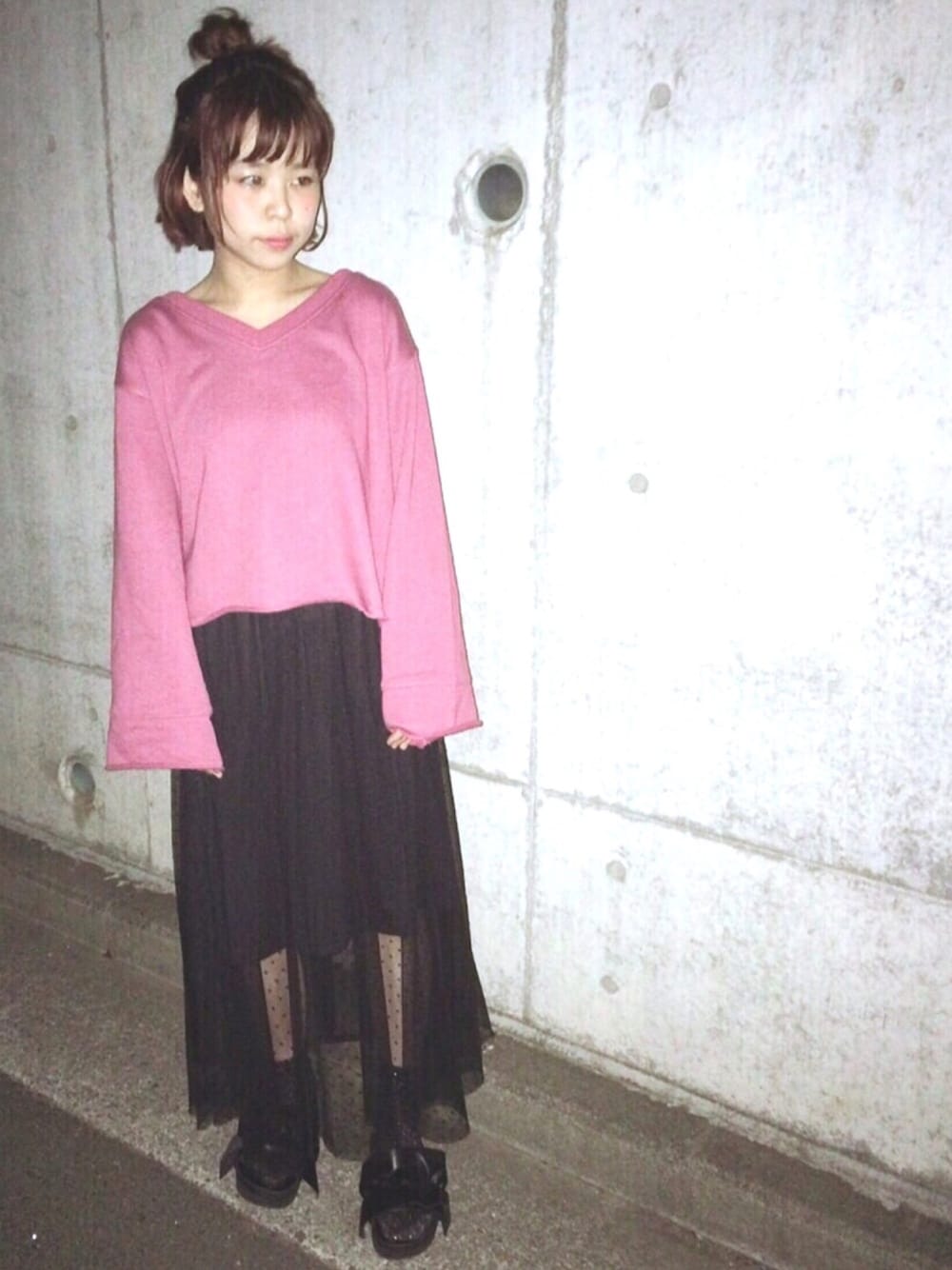 フレア袖のシンプルなトップスと ドット柄のチュールスカートで モードなフェミニンコーデ✨ 🍿model:いわい🍿 チビーズの強い味方💥ユーズドライクな コーデが得意ないわいのWEARもゼヒcheck♩