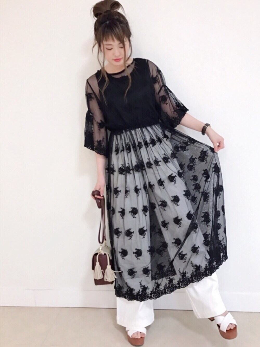 レースワンピに ワイドパンツをレイヤード!! 甘さおさえめの 大人ガーリーコーデ♪ 👠model:あっちゃん👠 シンプル×トレンドなあっちゃんのwearも ゼヒcheckしてみてください♩
