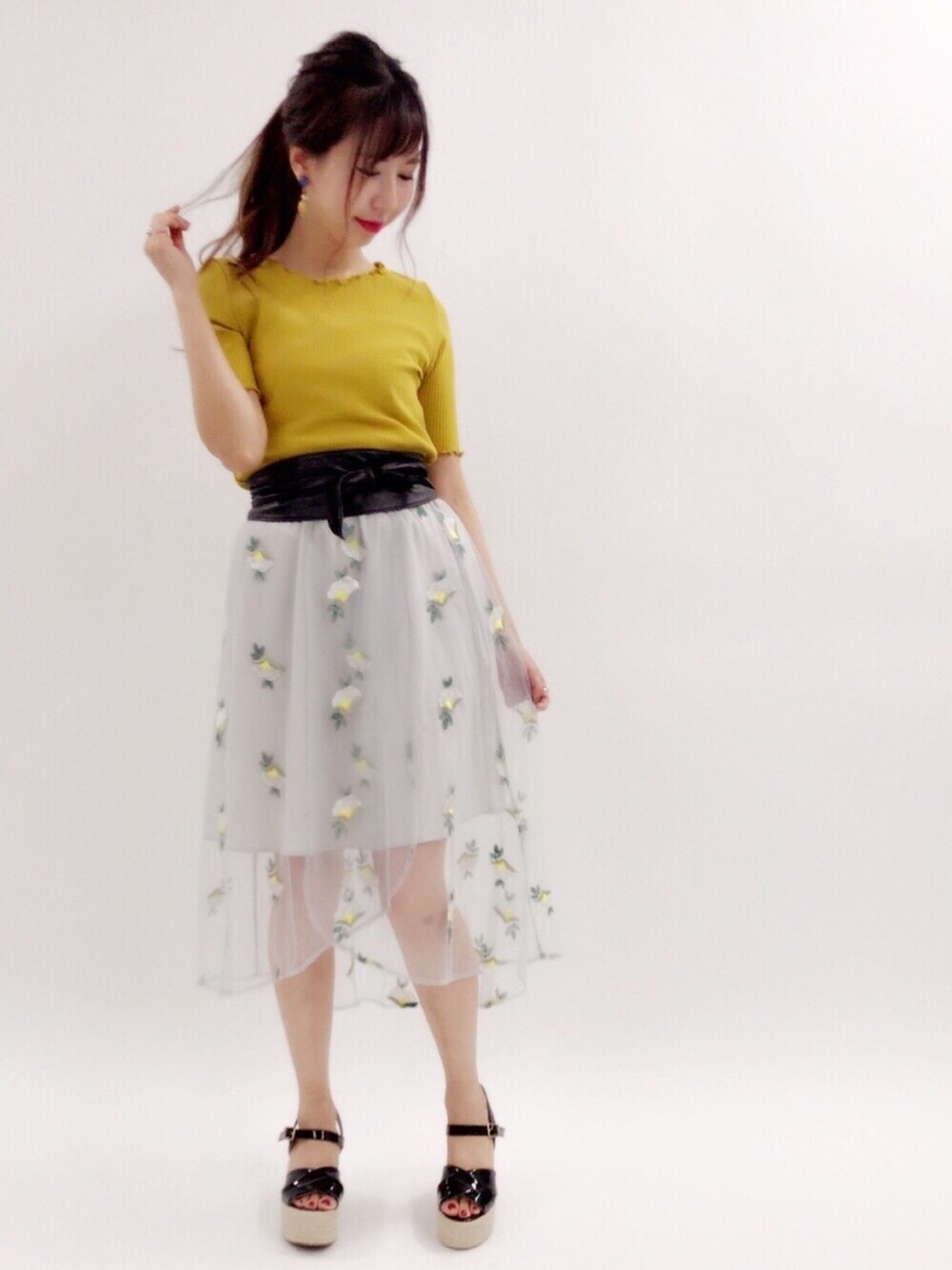 刺繍がかわいいスカートで カラフル春コーデ♡ サッシュベルトでスタイルアップ!! 🌹model:ayaka🌹 トレンドフェミニンなayakaのWEARもゼヒCheckしてみてください♩