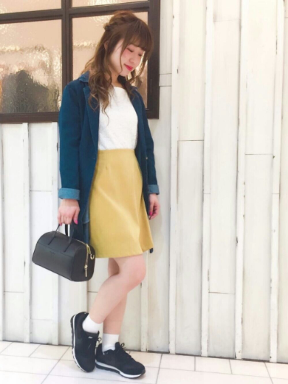 甘めなレーストップスを デニムのチェスターコートとスニーカーで きれいめカジュアルに 🎀model:erina🎀 ガーリーゆるカジュアルなerinaのWEARもゼヒCheckしてみてください❤︎