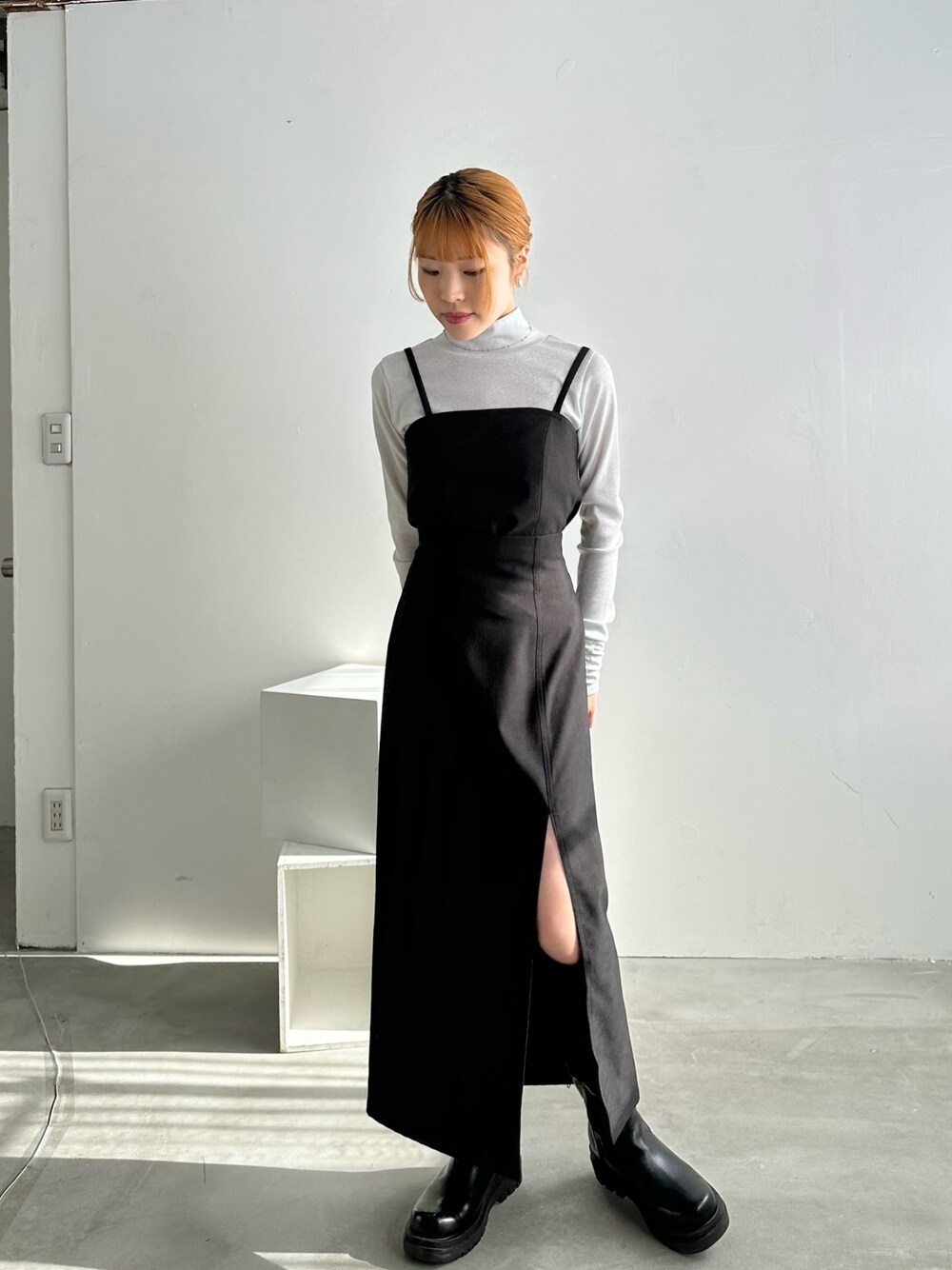 キャミワンピに見えて実はビスチェとスリットスカートのセットアイテム🖤 トレンドのラメトップスとレイヤードがオススメ🪩