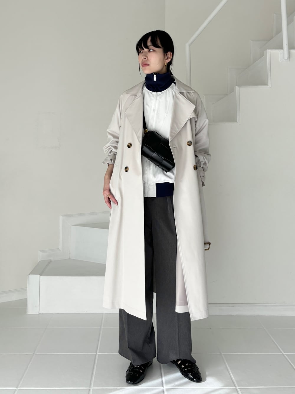 EPIMI ÉPIMMY(EMIPI ÉPIMMY)のトレンチコート「くすみカラーロングトレンチコート」を使ったコーディネート